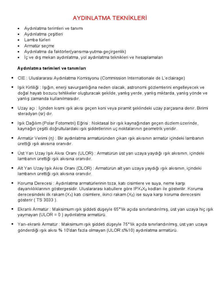 aydınlatma tekniği ders notları